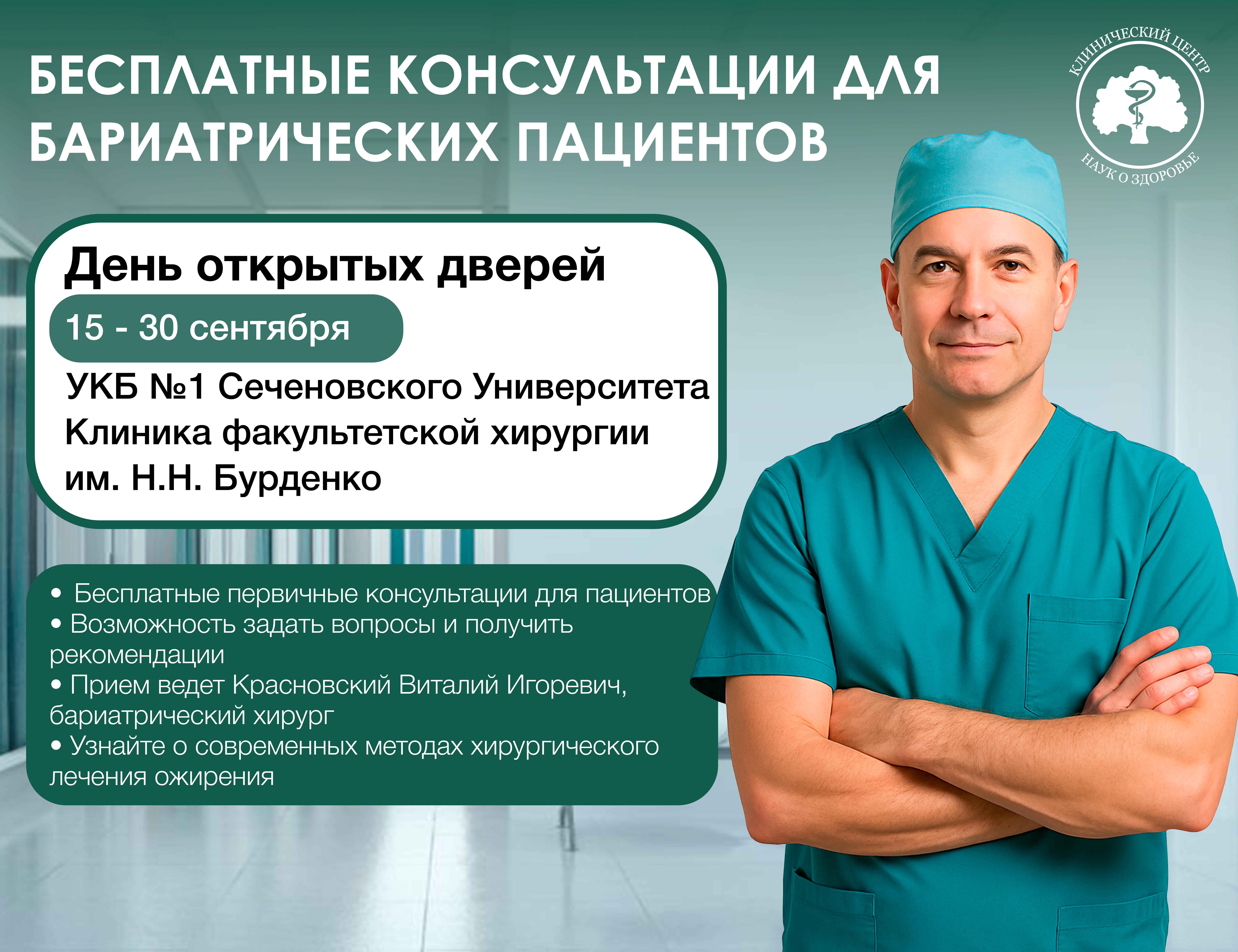 С 15.09 по 30.09 на базе УКБ№1 Сеченовского университета организована акция «День открытых дверей» для бариатрических пациентов.
