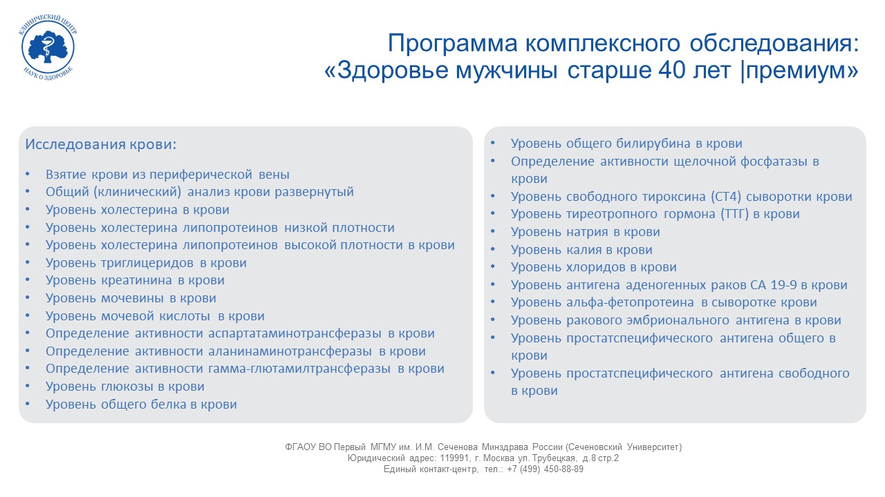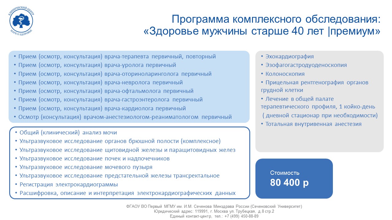Комплексная программа «Здоровье мужчины старше 40»