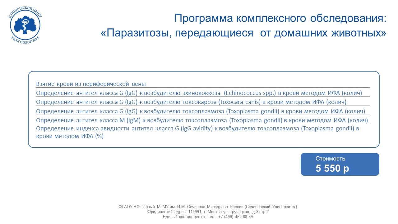 Программа комплексного обследования: «Паразитозы, передающиеся от домашних животных»