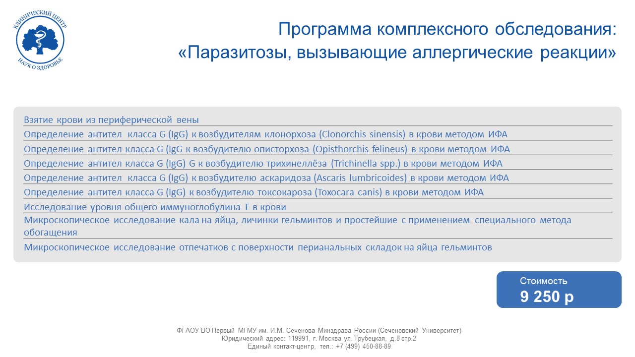 Программа комплексного обследования: «Паразитозы, вызывающие аллергические реакции»