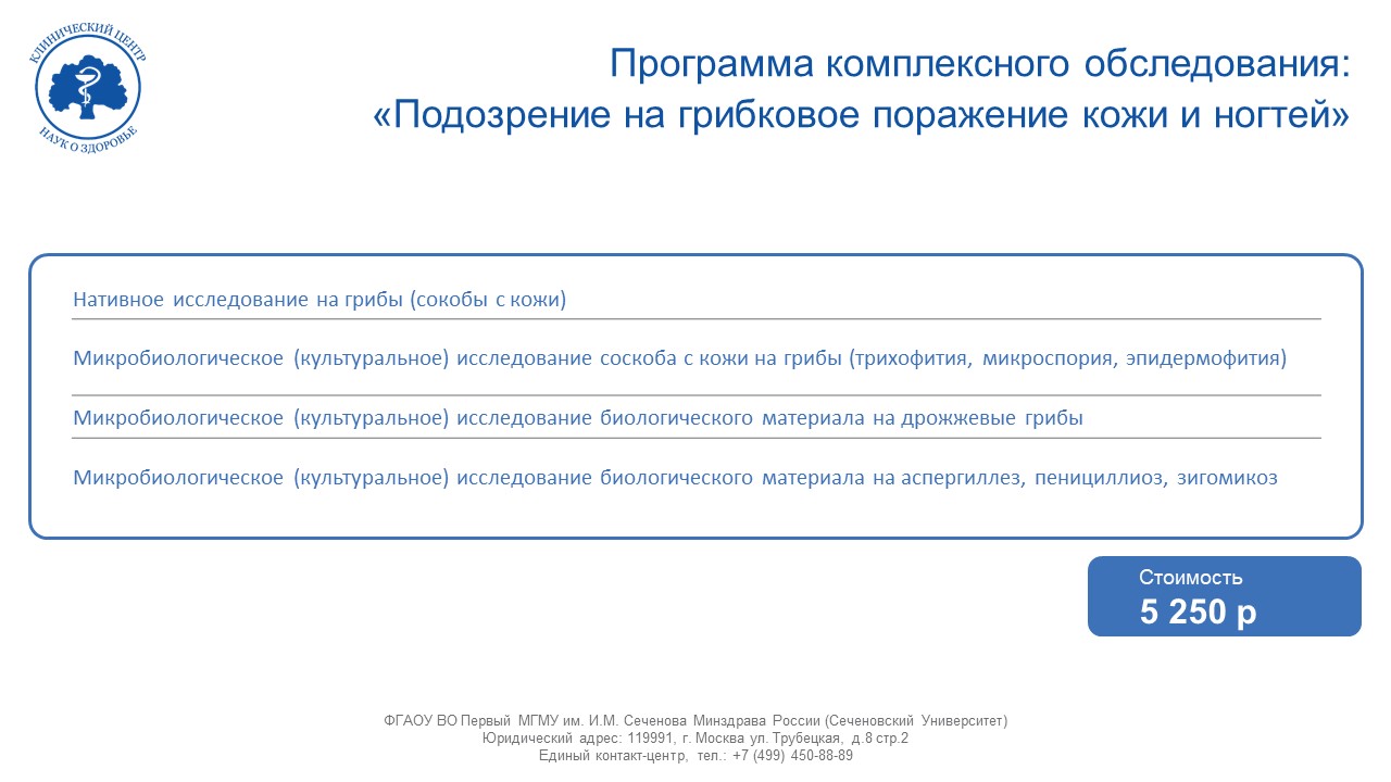 Программа комплексного обследования: «Подозрение на грибковое поражение кожи и ногтей»